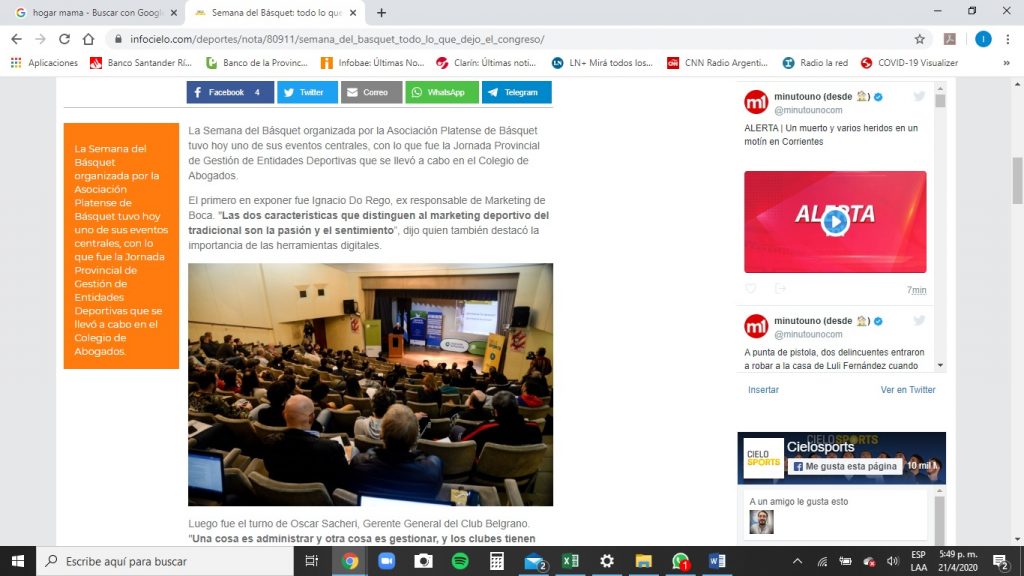 Los asistentes de este evento pudieron analizar el presente y los desafíos que viven las instituciones deportivas en el cotidiano, de la mano de expertos en diferentes áreas de la gestión de entidades deportivas, sumado a las presencias de Horacio Muratore, Presidente de la FIBA, Federico Susbielles, máximo directivo de la Confederación Argentina de Básquetbol y Leonardo Gutiérrez, integrante de la Generación Dorada.